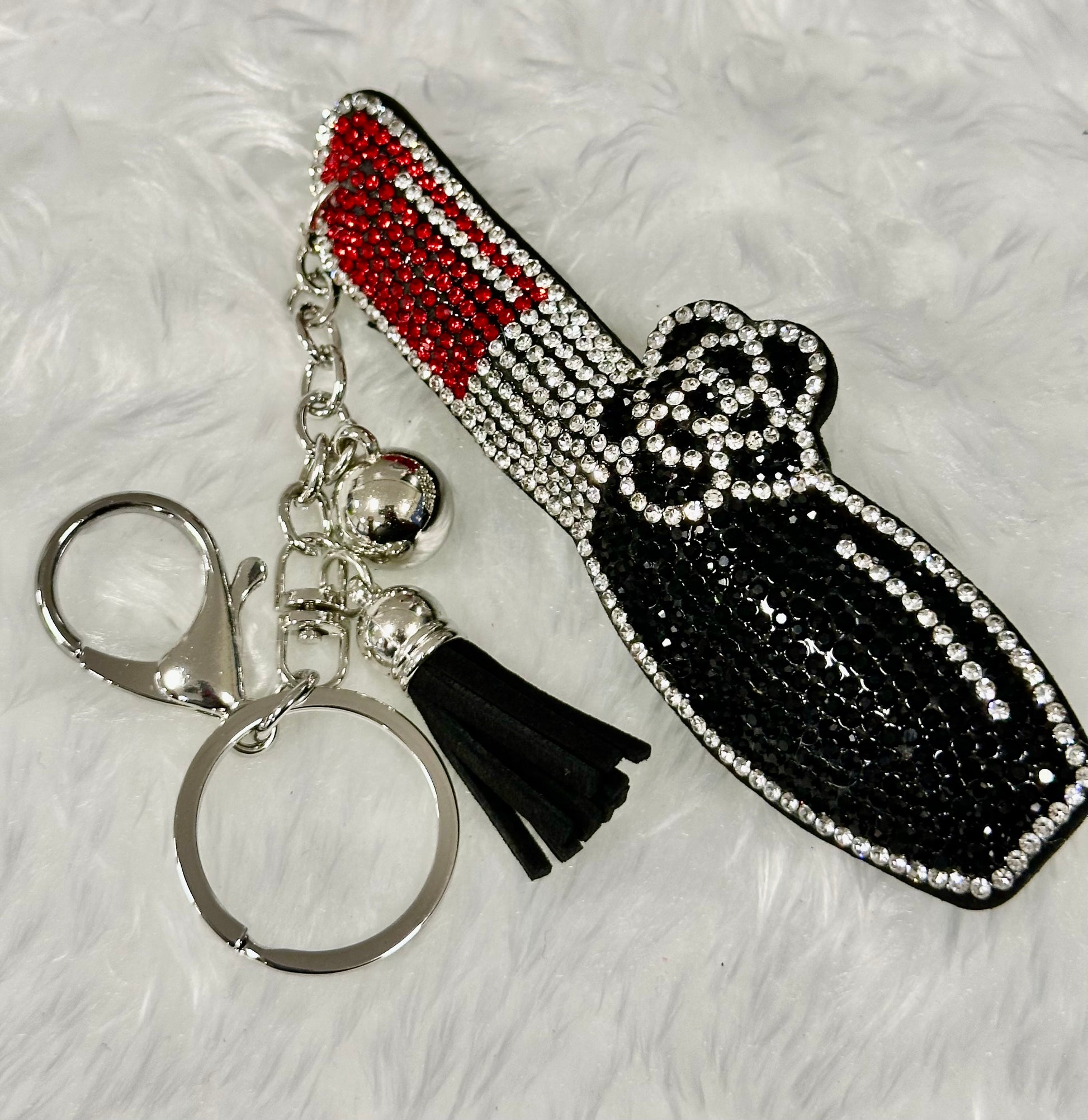 Add a touch of glam to your accessories with this dazzling rhinestone lipstick keychain! Perfect for beauty lovers and fashionistas.